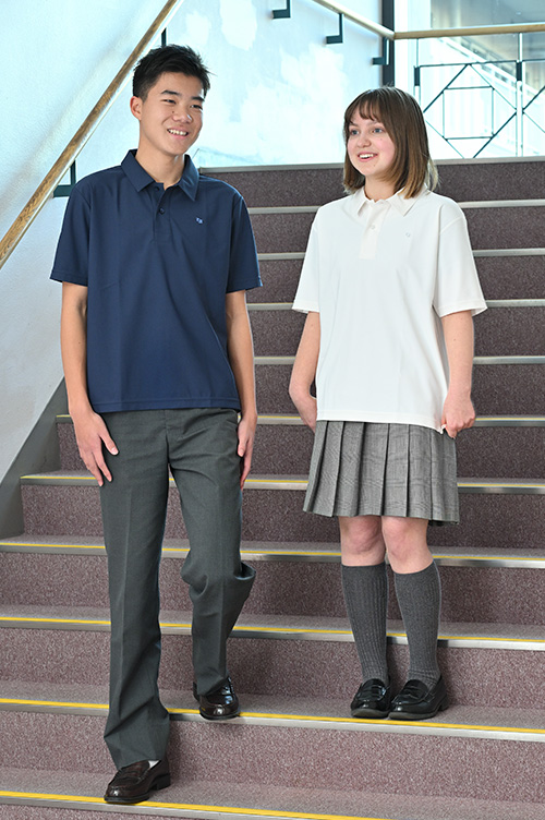 男女ともに、紺・白いずれの色のポロシャツも着用いただけます。